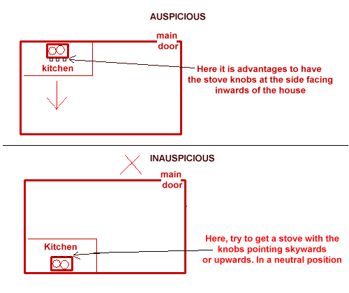 However, if the main door is located at east, then, it would be advantages to have the stove with the knobs at the side facing inwards of the house.