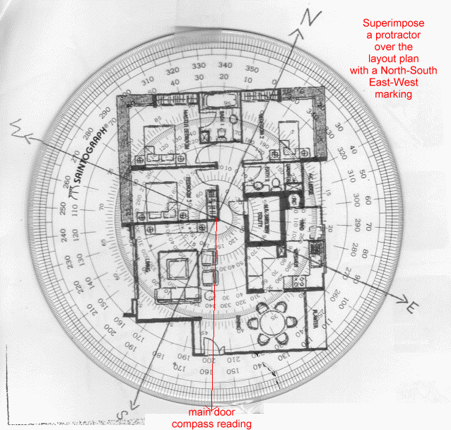 1. Attached please find an illustration of how one can use a protractor to find the main entrance door.