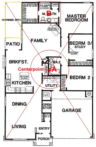 In addition to the toilet at the centrepoint of the home; another further problem is that the centrepoint or the centre-of-gravity for this home does not have clear space.